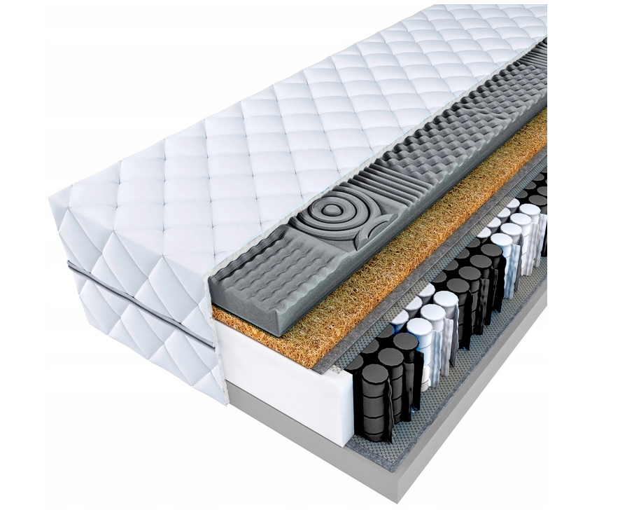 PRESTIGE KOKOS profilinis kišeninis čiužinys 140×200 cm – ergonomiškas sprężyninis čiužinys, skirtas komfortiškam ir kokybiškam miegui. Jame yra nepriklausomos „pocket“ spyruoklės, kurios prisitaiko prie kūno kontūrų ir užtikrina punktinę atramą, gerindamos stuburo padėtį miego metu. Čiužinio konstrukcijoje yra 4 cm profiliuotos masažo piankos, 1 cm natūralaus kokoso pluošto, 12 cm spyruoklių sluoksnis ir 3 cm aukštos kokybės PUR T25 putų sluoksnis – tai padidina komfortą, stabilumą ir ilgaamžiškumą. Kokoso pluoštas gerina oro cirkuliaciją, suteikia tvirtumo ir padeda mažinti drėgmės kaupimąsi, todėl čiužinys yra tinkamas alergiškiems žmonėms. Modelis turi antialerginį, nuimamą ir skalbiamą pikuotą užvalkalą, kurį lengva prižiūrėti. Dvipusis dizainas su H3/H4 tvirtumo kombinacija leidžia pasirinkti tinkamiausią miego pojūtį. Dėl geros ventiliacijos ir konstrukcijos šis čiužinys suteikia komfortą tiek vienam žmogui, tiek dviem.